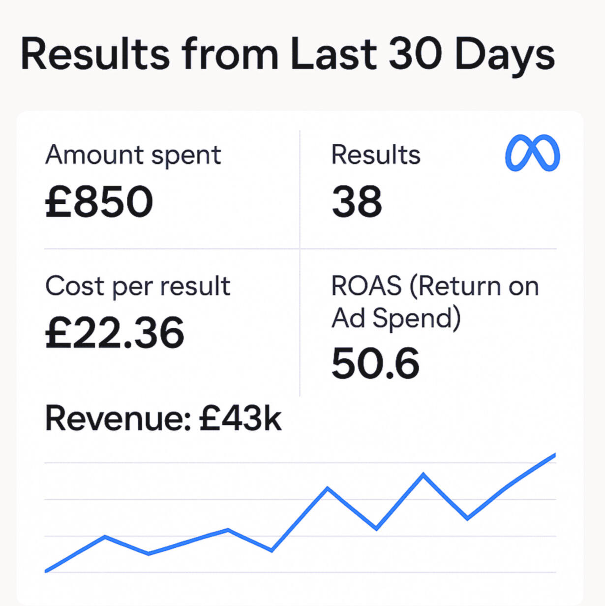 “We’d spent months paying for ads that went nowhere, clicks, no calls, just wasted money.I was this close to packing it in completely.Then Henry and the team stepped in. They restructured everything, built a proper landing page, and within weeks, the phone started ringing again.We turned an £850 ad spend into over £43,000 worth of booked jobs, and haven’t looked back since.”